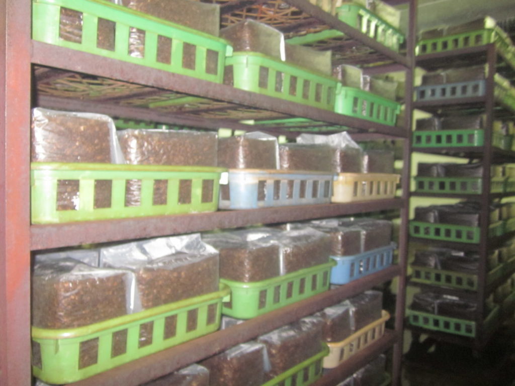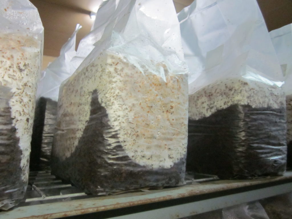 製造から120日で培養が完了いよいよ、きのこの発生へ